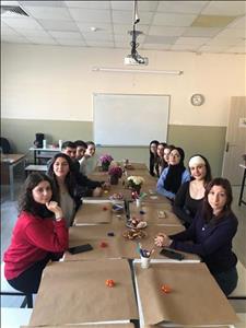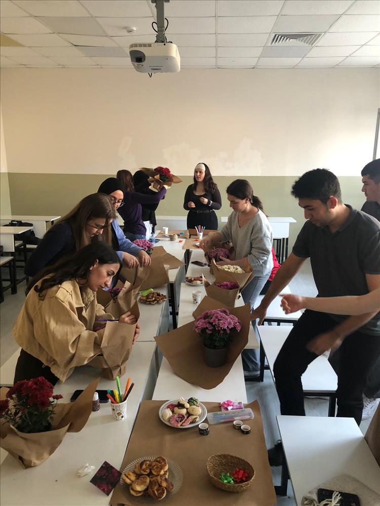 Programın uygulamalı bölümünde ise öğrenciler, renkli kasımpatı çiçek saksılarını süsleyerek sevdiklerine anlamlı notlarla birlikte hediye etmek üzere hazırlık yaptılar. El emeğiyle hazırlanan bu çiçekler, etkinliğe hem estetik hem de duygusal bir değer kattı.