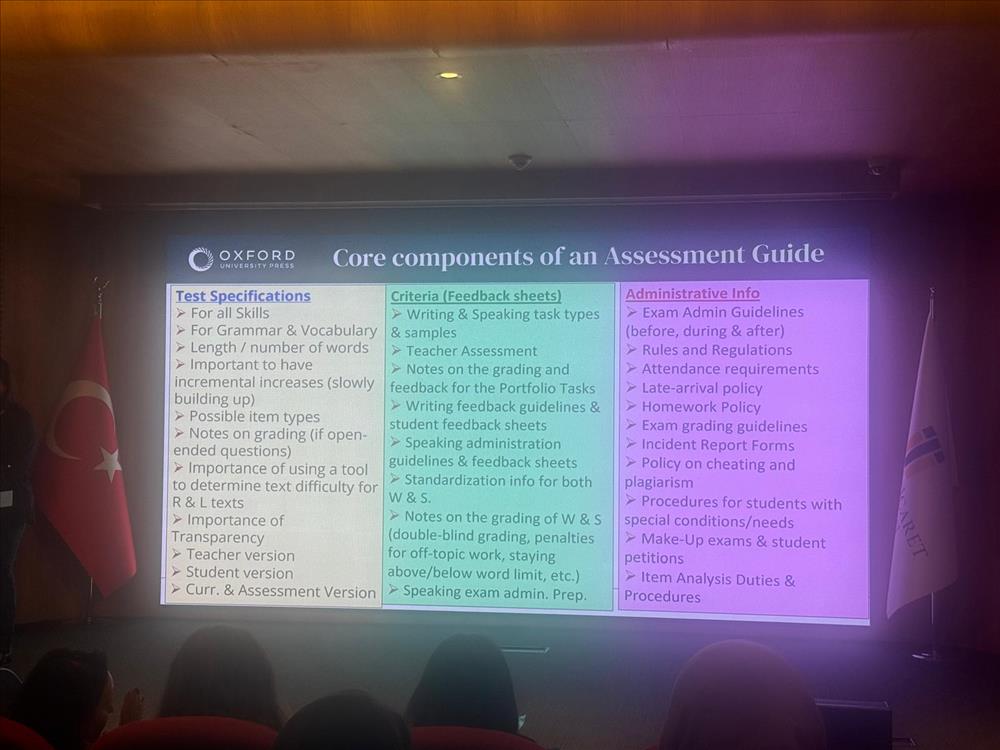 Zeynep ÜRKÜN ve Mehtap ÇİÇEN’ in konuşmacı olarak katıldığı konferansta yabancı dilde ölçme-değerlendirme, program tasarımı, mesleki gelişim konularında yeni perspektifler, pratik bilgiler ve fırsatlar ele alınmıştır.